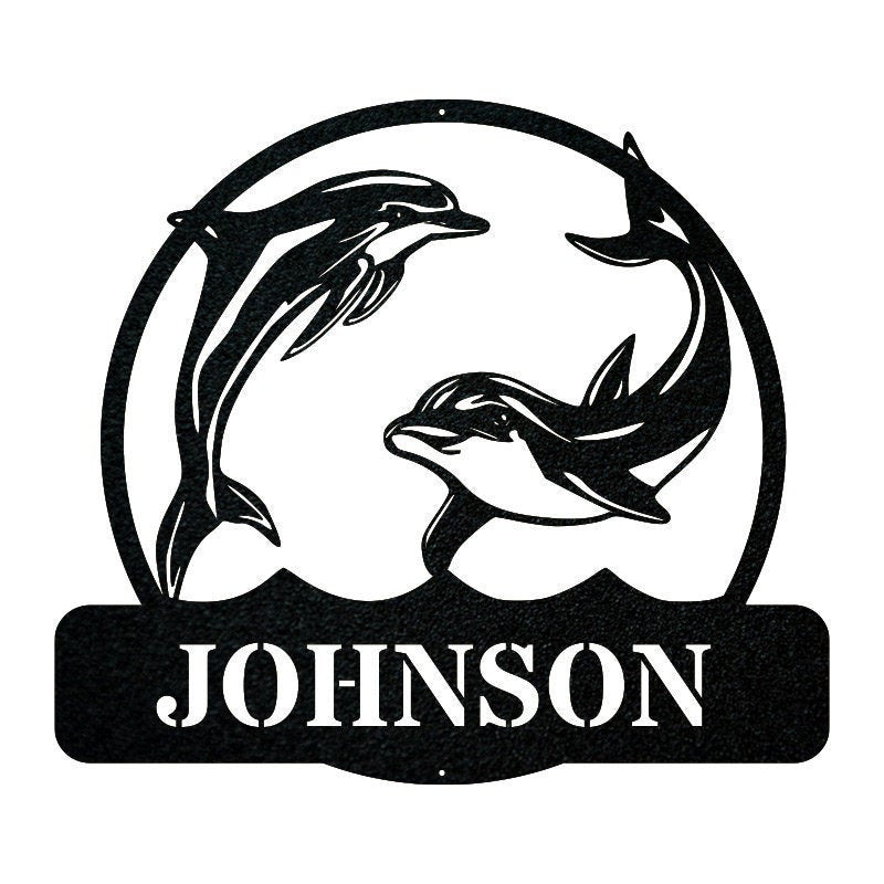 Metal Dolphin Sign Personalized Metal Monogramfamily Name Signlake House Signbeach Decorations