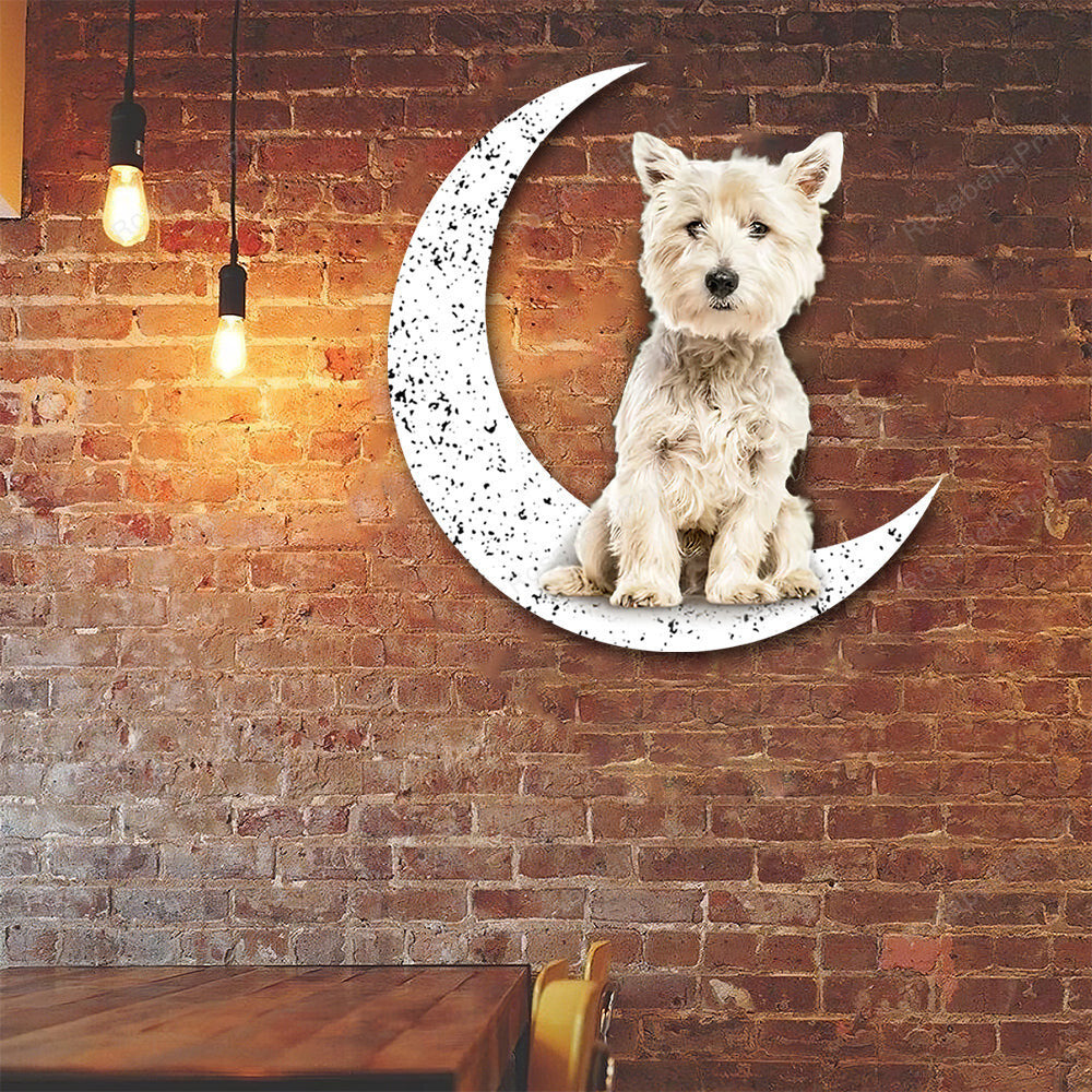 Metal Sign West Highland White Terrier 1 Sit On The Moon Gift for Dog Lover Decorations