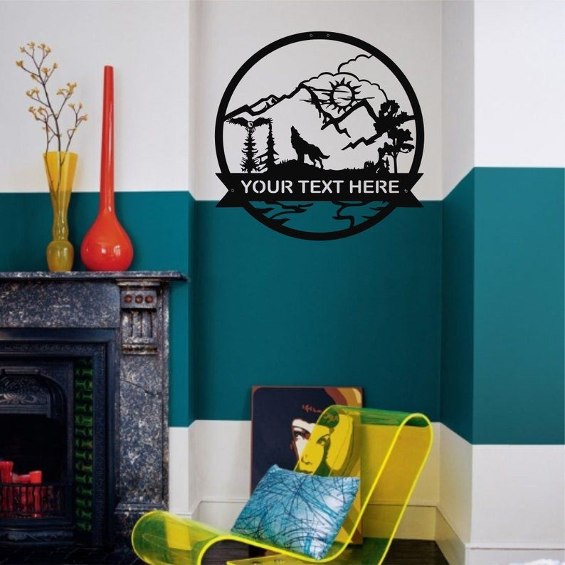 Metal Wolf Decor Family Name Sign Tree Mountain Decoration Personalized Custom Wall Decoration Decorations