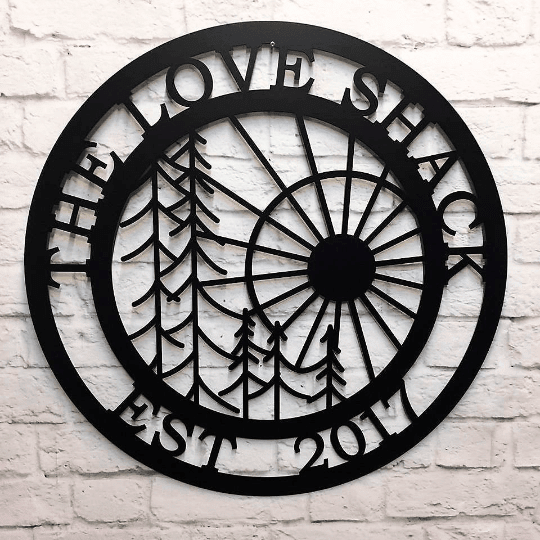 Modern Tree With Sun Scene Metal Sign Cut Metal Sign Metal House Sign Decorations