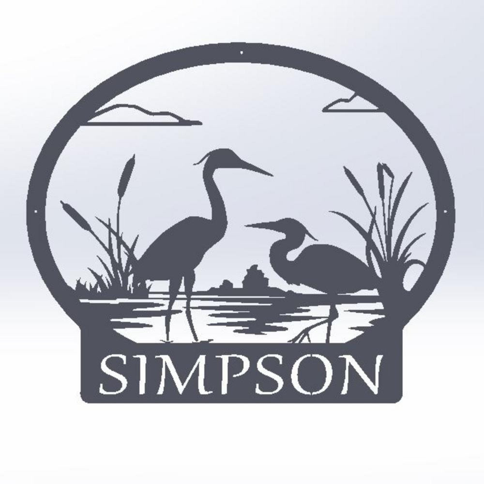 Monogram Crane Nature Beach House Lake House Metal Personalized Wedding Gift Housewarming Gift Weatherproof Cut Metal Sign Decorations