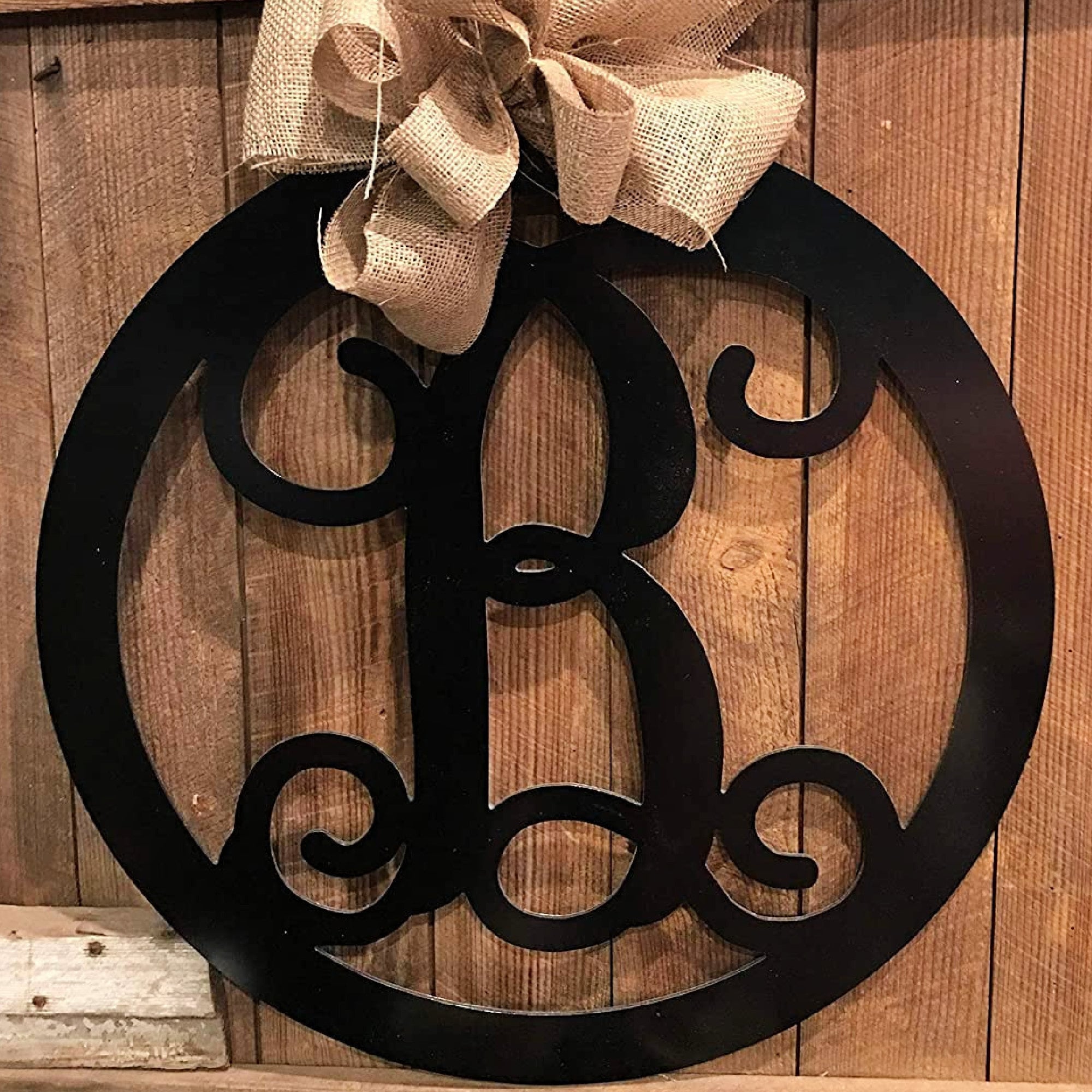 Monogram Family Door Hanger Decor Single Letter Personalized Metal Acm Decor Vine Script Font Custom Letter Sign Door Wreaths Laser Cut Metal Signs Custom Gift Ideas