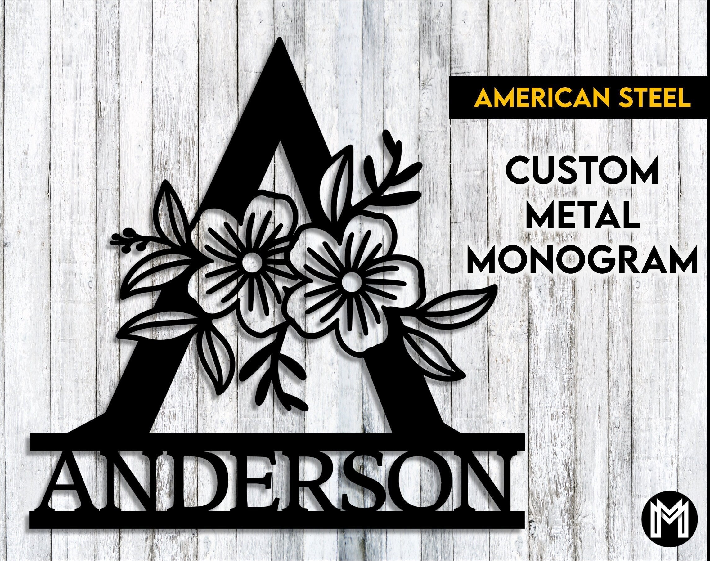 Monogram, Floral, Metal Sign, Custom, Personalized Gift, Wedding Gift, Housewarming Gift, Large, Weatherproof, Metal Letter Laser Cut Metal Signs Custom Gift Ideas