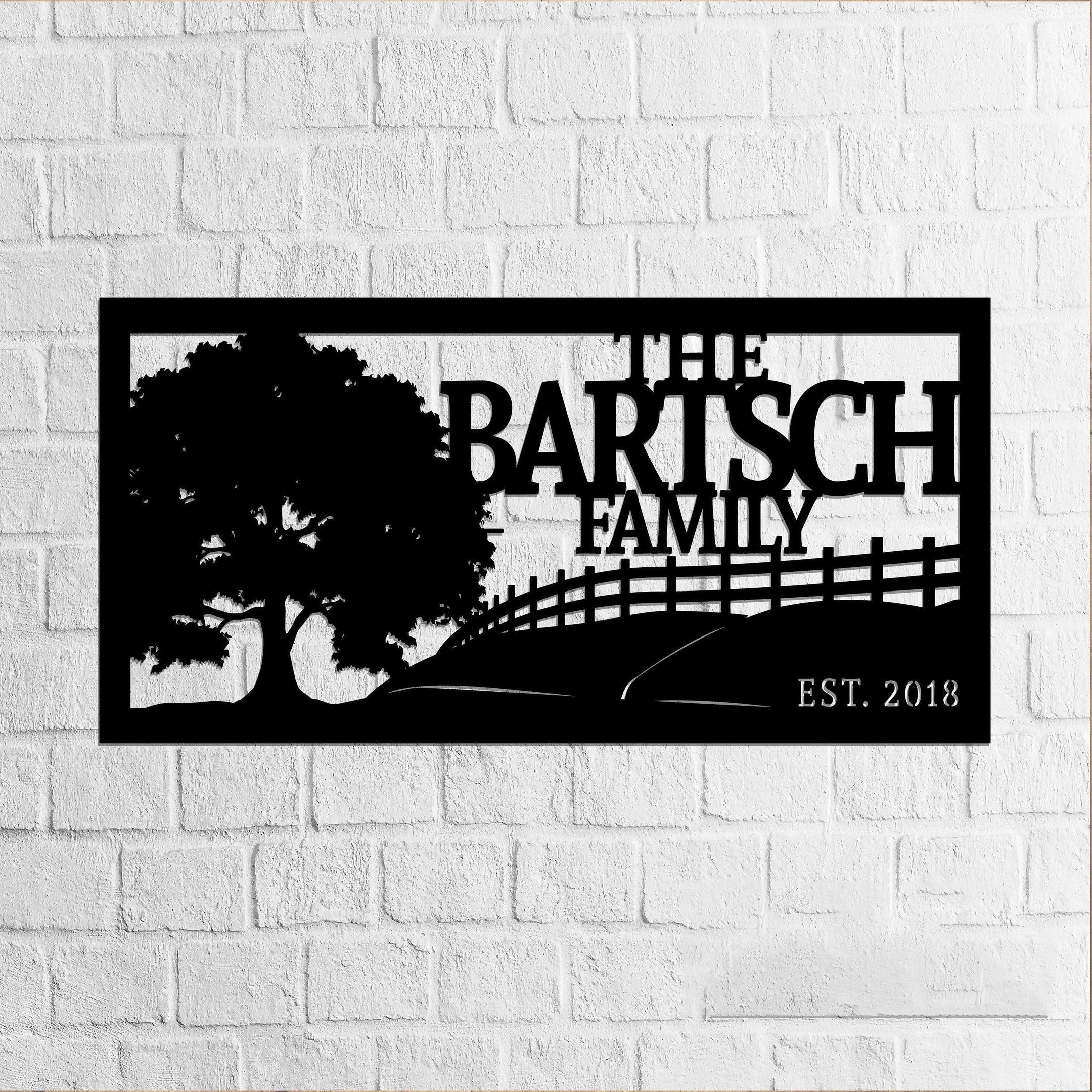 Oak Tree Sign Ranch Land Sign Family Name Sign Steel Sign Wreath Family Tree Sign Welcome Sign Oak Tree Art Entrance Decorations