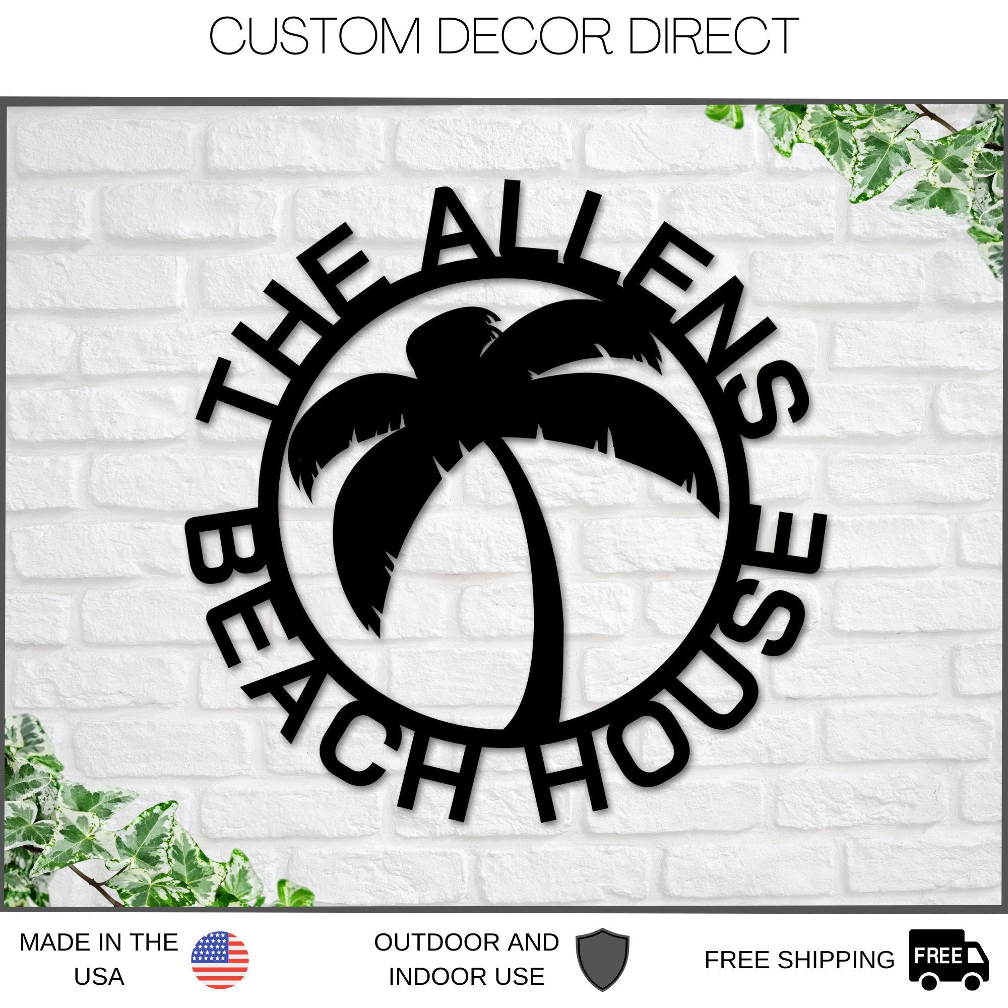 Palm Tree Metal Sign, Beach House Personalized, Steel Metal Wall Sign, Wall Customized With Name And Palm Trees, Personalized, Beach Decor Laser Cut Metal Signs Custom Gift Ideas