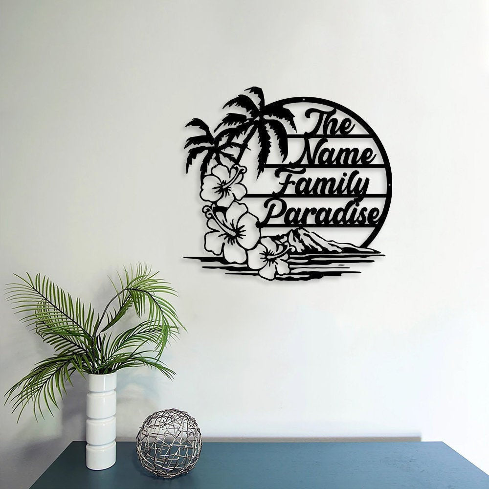 Personalized Family Beach Metal Sign, Beach Palm Tree Paradise Metal Sign, Metal Beach Sign, Family Beach House, Metal Wall Art, Laser Cut Metal Signs Custom Gift Ideas
