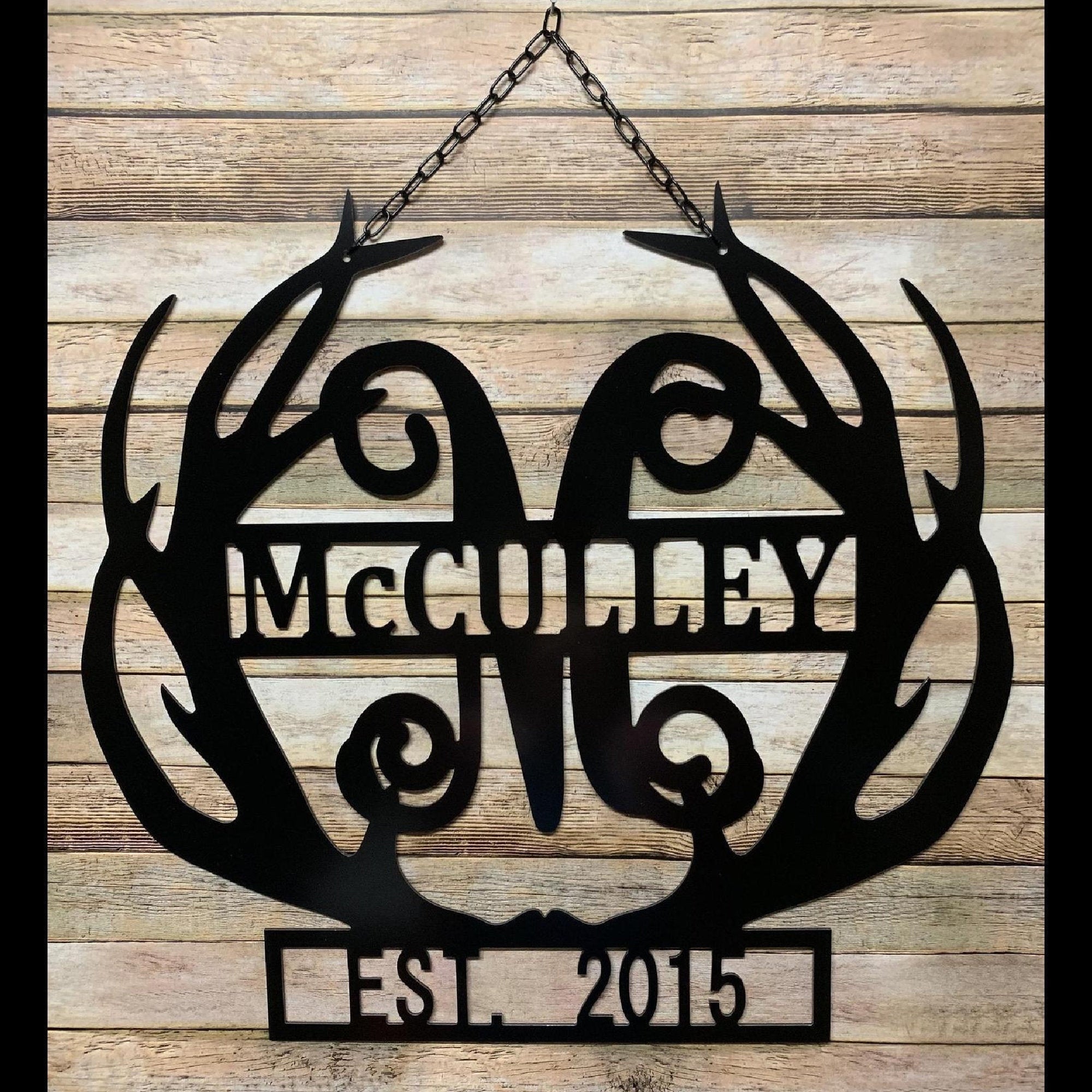 Personalized Gift For Him Deer Antler Wall Decor, Family Name & Established Date Sign, Monogram Hunter Gift Idea Laser Cut Metal Signs Custom Gift Ideas