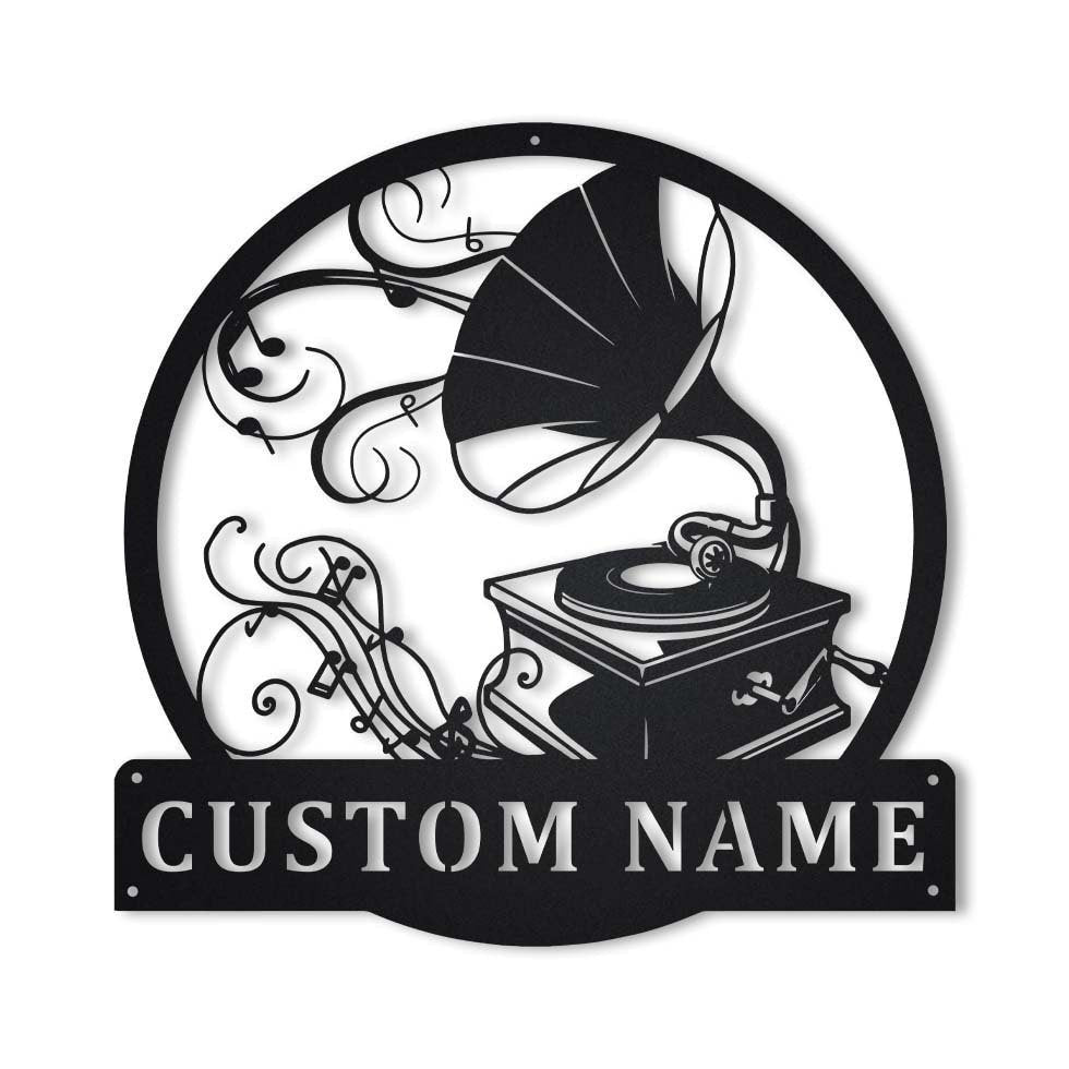 Personalized Gramophone Monogram Metal Sign Art, Custom Gramophone Name Metal Sign, Gramophone Gifts For Gift, Musical Instrument Gift, Laser Cut Metal Signs Custom Gift Ideas