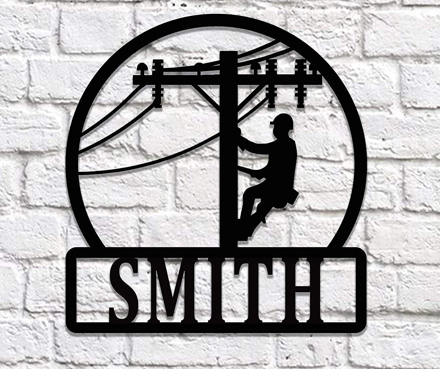Personalized Lineman Metal Monogram Sign Wedding Gift Family Name Sign Outdoor Name Sign Last Name Sign Decorations