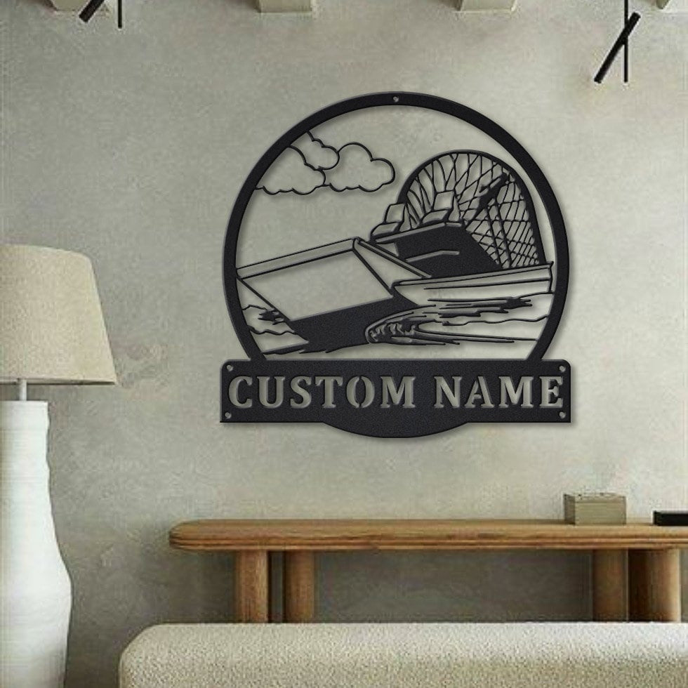 Personalized Swamp Boat Monogram Metal Sign Art, Custom Swamp Boat Metal Wall Art, Swamp Boat Antler Decor, Housewarming Outdoor Metal, Laser Cut Metal Signs Custom Gift Ideas