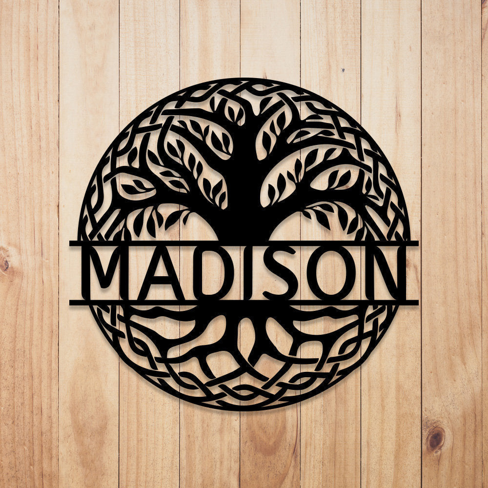 Personalized Tree Metal Sign, Housewarming Gift, Metal Monogram Sign, Door Hanger, Last Name Sign, Metal Wall Art, Wedding Gift Laser Cut Metal Signs Custom Gift Ideas