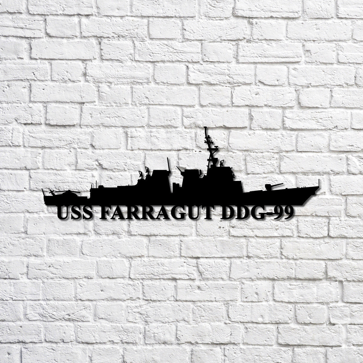 Uss Farragut Ddg99 Navy Ship Metal Sign, Memory Wall Metal Sign Gift For Navy Veteran, Navy Ships Silhouette Metal Sign Laser Cut Metal Signs Custom Gift Ideas
